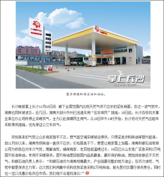 近幾日,湖南部分市州已迅速采取“壓非保民”措施,停止了眾多商家及出租車的燃?xì)夤?yīng)。突如其來的氣荒讓大家措手不及。為了確保市場供油穩(wěn)定,讓星城人民溫暖過冬,順暢出行,和順石油積極應(yīng)對,從山東緊急采購2萬噸國VI標(biāo)準(zhǔn)柴油,專門用于市場保供,切實履行企業(yè)社會責(zé)任,同時以優(yōu)惠價格供應(yīng)市場,絕不借機漲價。
